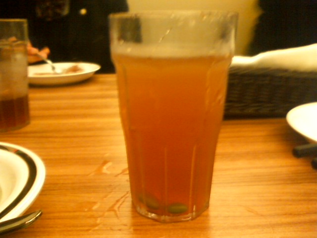 まず最初にオレンジジュースの酸味が来て、その後、その酸味にお茶の味が重なって、そこにハンバーグっぽい味が「ぶぅゎぁーっ」と広がる究極の絶叫カオスドリンクっていう感じでしょうか(笑)