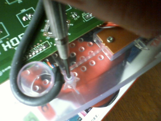 高いものだとレバーやボタンの換装が簡単なように作られているのですが、これは安物なので普通にはんだで止めてあるだけです。
