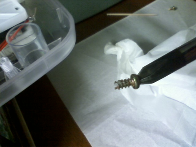 極細-ドライバーを突っ込んでぐりぐりして取り出します。