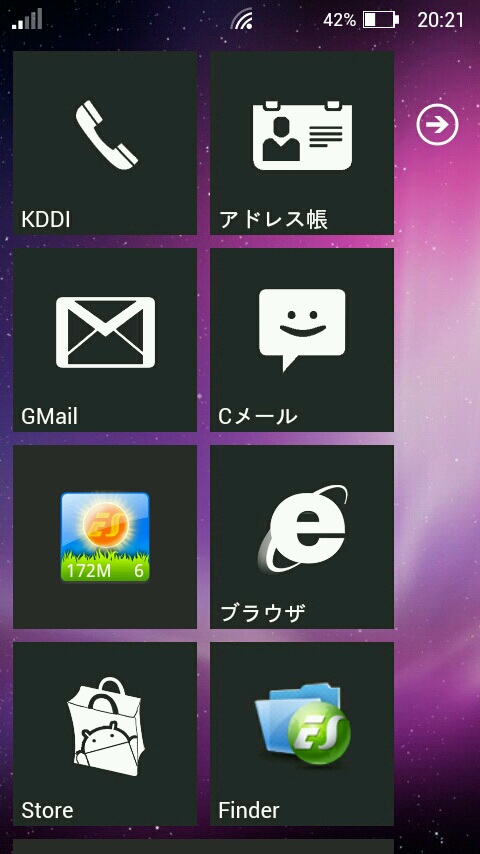 Launcher7というアプリを使って、WindowsPhone7のMetroUIを再現。