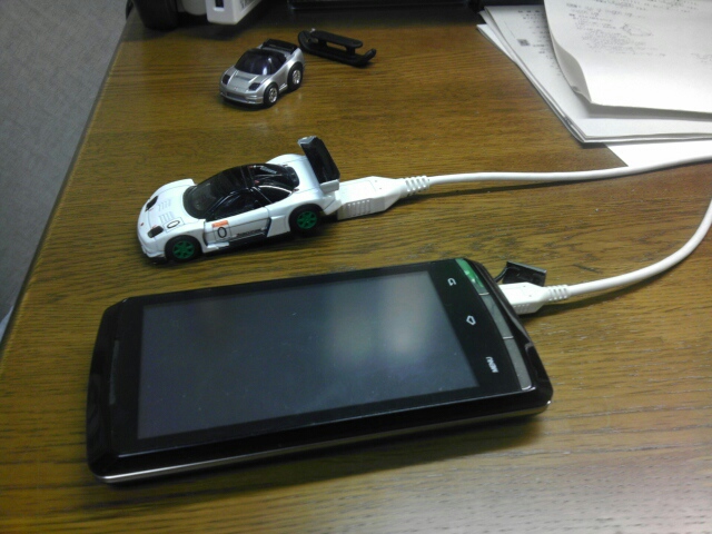 まず、本体とスマホをUSBケーブルで繋ぎます。