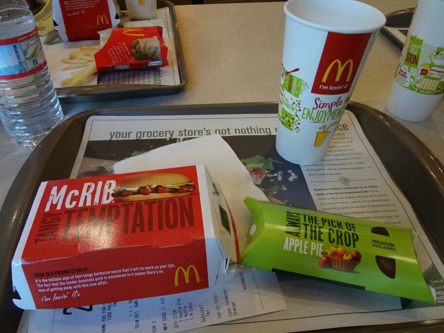 日本では無いマックリブ買いました。ジュースはドリンクバー的な感じでした。
