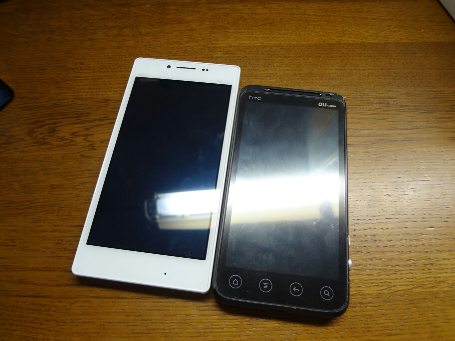 EVOと比較。それにしても薄くてデカい。4.7インチは伊達じゃない。
