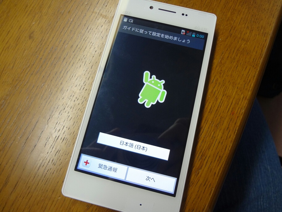 電源をつけるとドロイド君がコンニチハ。かわいい。