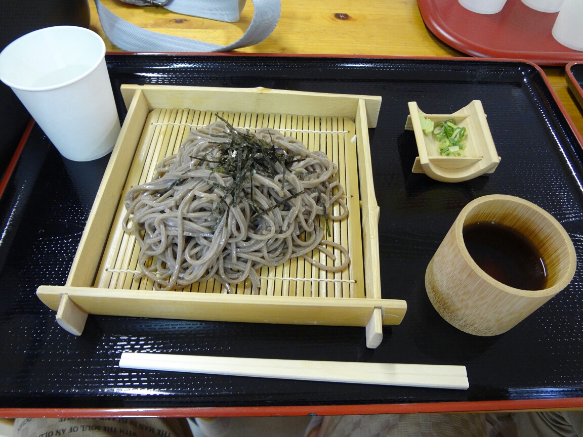 食券を買って、それをカウンターに持っていって、従業員の方に渡すと、蕎麦とつゆと薬味が貰えるんですよ。そういう所で食べました。