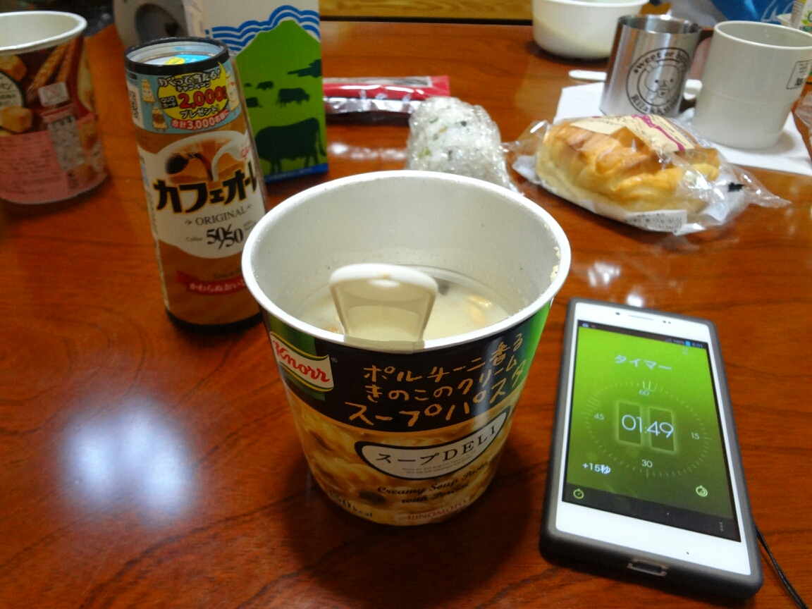 きのこパスタスープで朝の一杯。