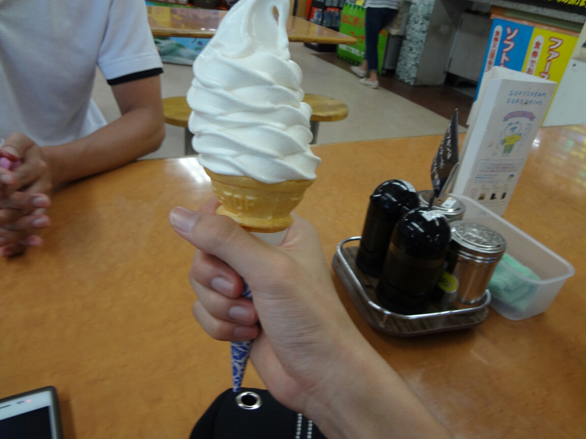 高速道路にのって最初の休憩所に選んだ蒜山高原SAではアイス食べました。