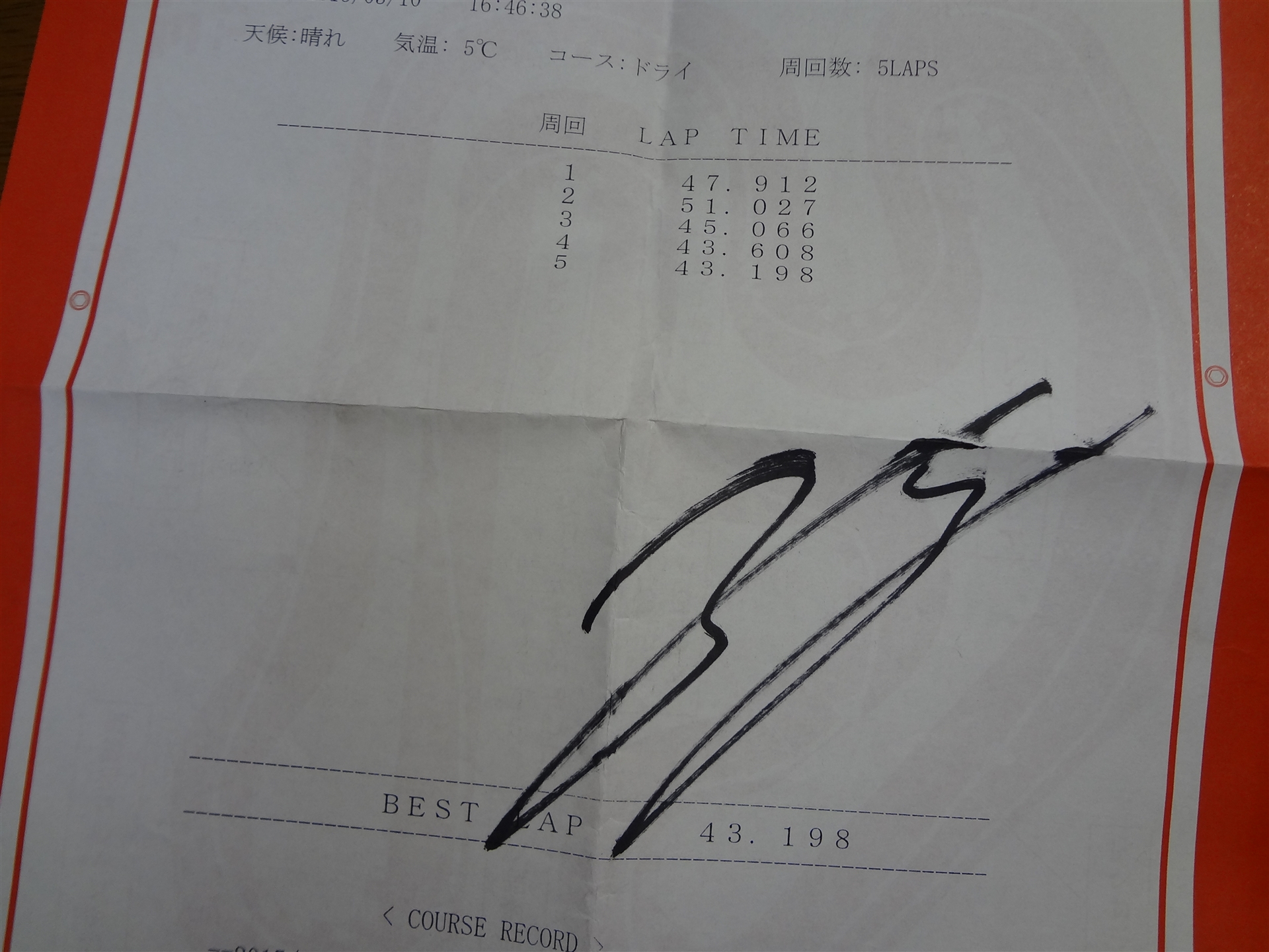 因みにタイムは0'43.198でした。Aライセンスが0'37.999以内なのでまだまだですね(笑)