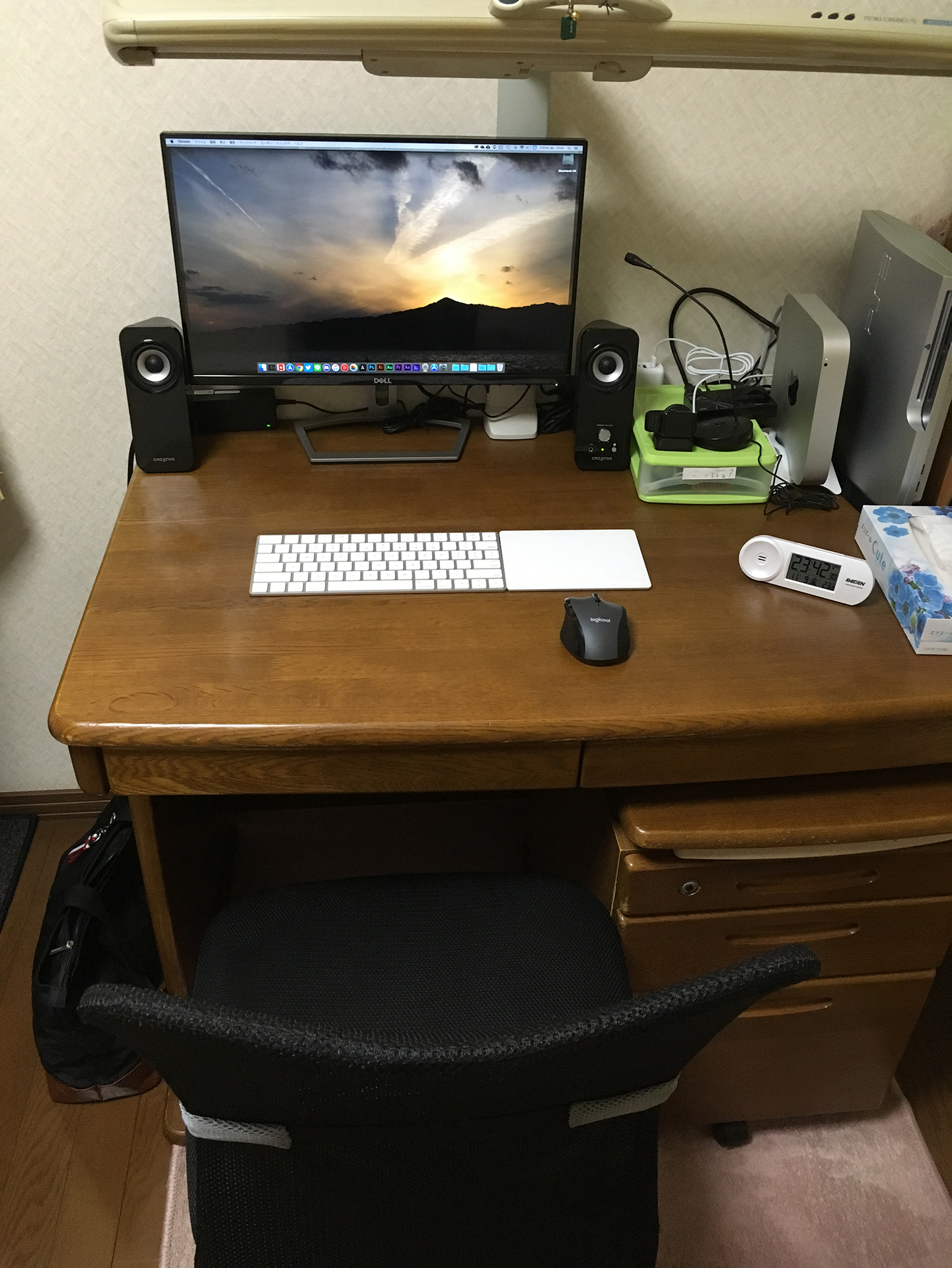 机自体は小学生の時から使ってる学習机をいろいろ改造して使い続けてます。何だかんだ便利なんですよこれ。